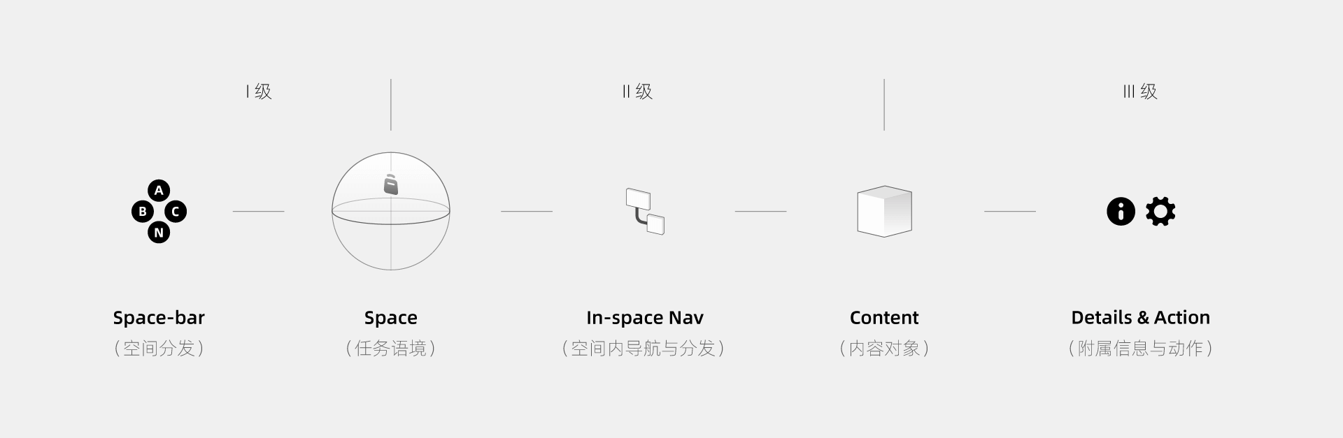 Level 1 for space distribution, global navigation, and single-task space preview.
